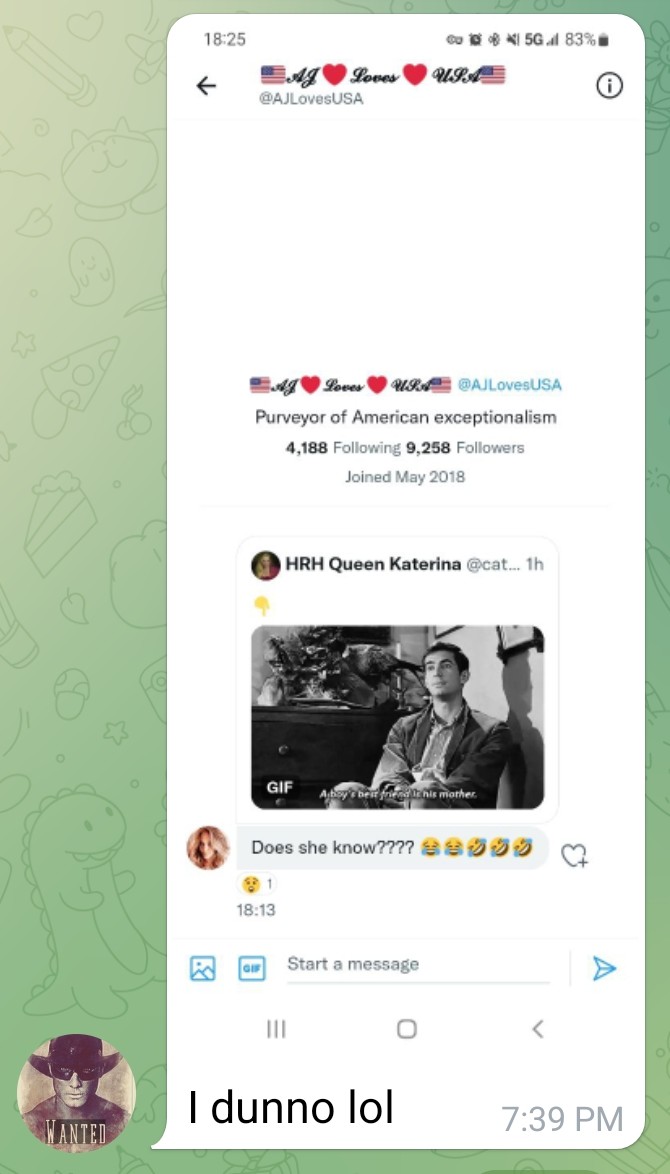 You can find Missy on Twitter: @AJLovesUSA and on Telegram: @AJLovesUSA.